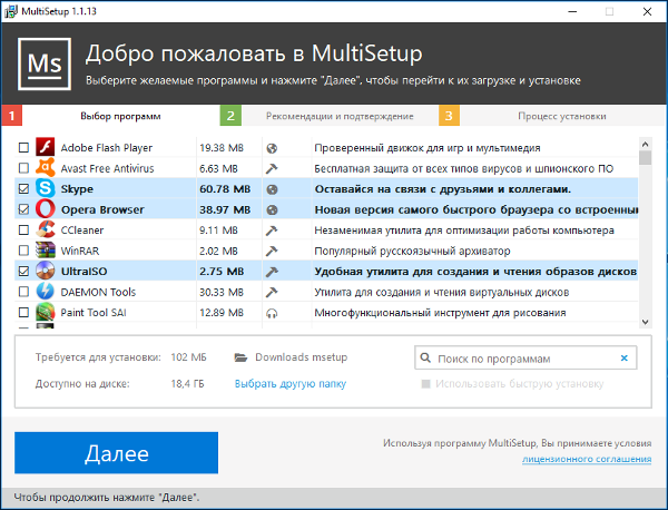 Причина скачать бесплатно «Мультисетап» очевидна. Зачастую для полноценной операционной системы Windows необходимо устанавливать дополнительные программы и приложения — браузеры, антивирусники, проигрыватели медиафайлов, приложения, обеспечивающие работу с системным накопителем.