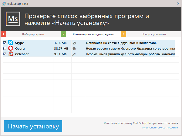 - немаловажным фактором работы MultiSetup является автоматическое обновление ПО, установленного на компьютере.